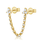 Make a bold statement with our 14K Gold 2-Triplet Full-Diamond Chain Earring. This exquisite earring features a triple diamond stud connected to a chain. Fully adorned with a row of sparkling diamonds, creating a luxurious and radiant look that’s perfect for any occasion.